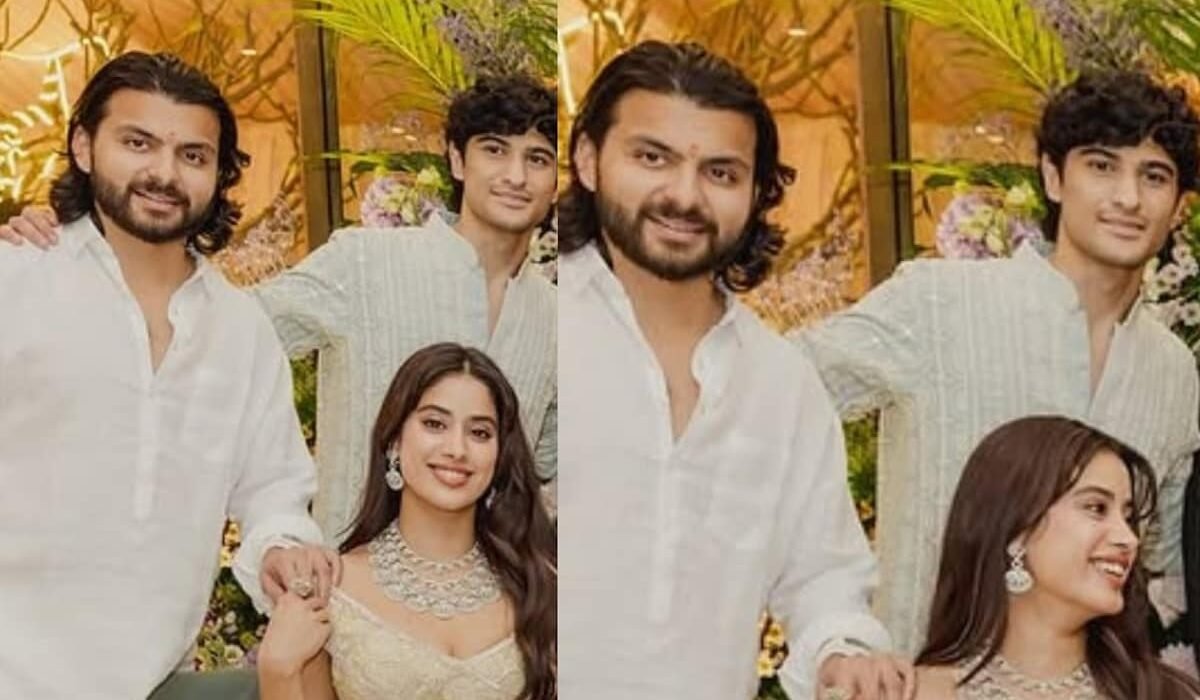 Janhvi Kapoor and her boyfriend, Shikhar Pahariya, were spotted together in close frames during her sister Anshula Kapoor’s Gor Dhana ceremony
